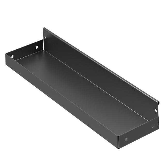 Полка выполнена из прочного металла и окрашена методом порошковой окраски в цвет основной конструкции, что обеспечивает устойчивость к царапинам и долговечность покрытия.