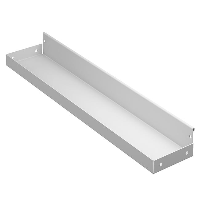 Полка выполнена из прочного металла и окрашена методом порошковой окраски в цвет основной конструкции, что обеспечивает устойчивость к царапинам и долговечность покрытия.