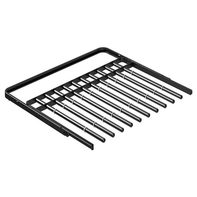 Брючница оснащена трубой диаметром 16 мм, рассчитанной на 10 пар брюк, и легко устанавливается между двумя вертикальными стойками на кронштейны глубиной 435 мм — без использования инструментов.